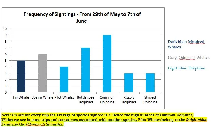 From the 29th of May to the 7th of June we sighted 7 different species of Cetaceans!