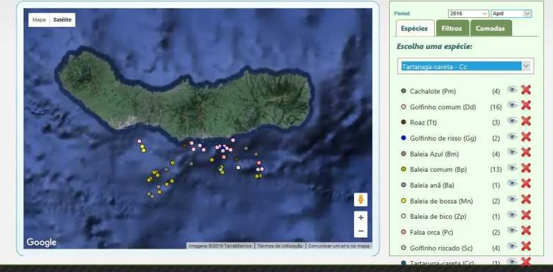April 2016 Chart – % of trips in which the selected species were seen (MONICET)