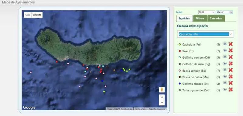 March 2016 Chart – % of trips in which the selected species were seen (MONICET)