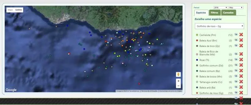 On the map above, we can see the spatial distribution of our sightings during the month of May along the South coast of São Miguel.
