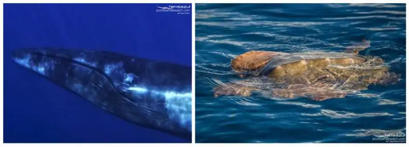 Bottlenose (Tt), common (Dd), Risso’s (Gg) and Atlantic spotted dolphins (Sf) among the small species in the dolphin family, and short-finned pilot whales (Gma) among the largest of the dolphin family. Beaked whales (Zp) and sperm whales (Pm) among the deep divers and sei whales (Bb) among the migratory baleen whales: