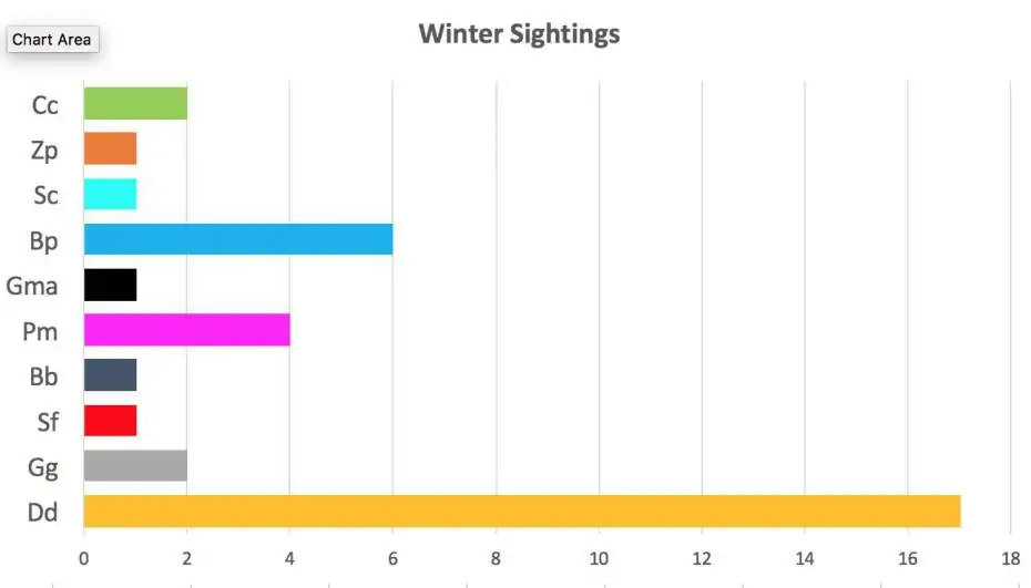 December, January and February sightings (Cc = loggerhead turtle, Zp = beaked whales, Sc = striped dolphins, Bp = fin whales, Gma = pilot whales, Pm = sperm whales, Bb = sei whales, Sf = Atlantic spotted dolphins, Gg = Risso’s dolphins, Dd = common dolphins)