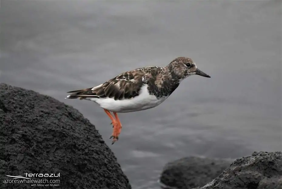 The young loggerhead turtles have also been recorded twice and the bird fauna was mostly dominated by sea gulls, although during our last trip in February we already saw a Cory’s shearwater! These pelagic birds are migratory and they usually arrive in spring to stay over the summer and autumn. At this time of the year, the little very active turnstones can be spotted around the Ilhéu and in the marina of Vila Franca do Campo. With their winter plumage and orange legs they run in all directions looking for little crustaceans, mollusks and insects in between rocks.